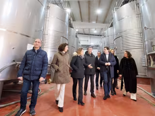 El presidente del Partido Popular, Alberto Núñez Feijóo, y el presidente de la Junta de Castilla y León y del PP regional, Alfonso Mañueco, visitan las Bodegas Hijos de Alberto Gutierrez, en Serrada (Valladolid). EUROPA PRESS/Claudia Alba - EUROPA PRESS/CLAUDIA ALBA