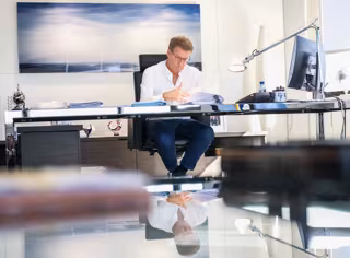 El líder del PP, Alberto Núñez Feijóo, en su despacho de la calle Génova preparando su discurso de investidura. - PP