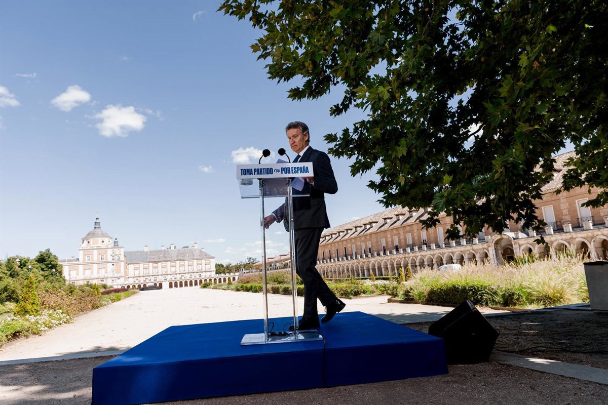 El presidente del Partido Popular, Alberto Núñez Feijóo, llega a una rueda de prensa, posterior a la reunión del Comité de Dirección del PP, en el Hotel NH Collection Palacio de Aranjuez, a 1 de septiembre de 2025, en Aranjuez, Madrid (España). - Carlos Luján - Europa Press