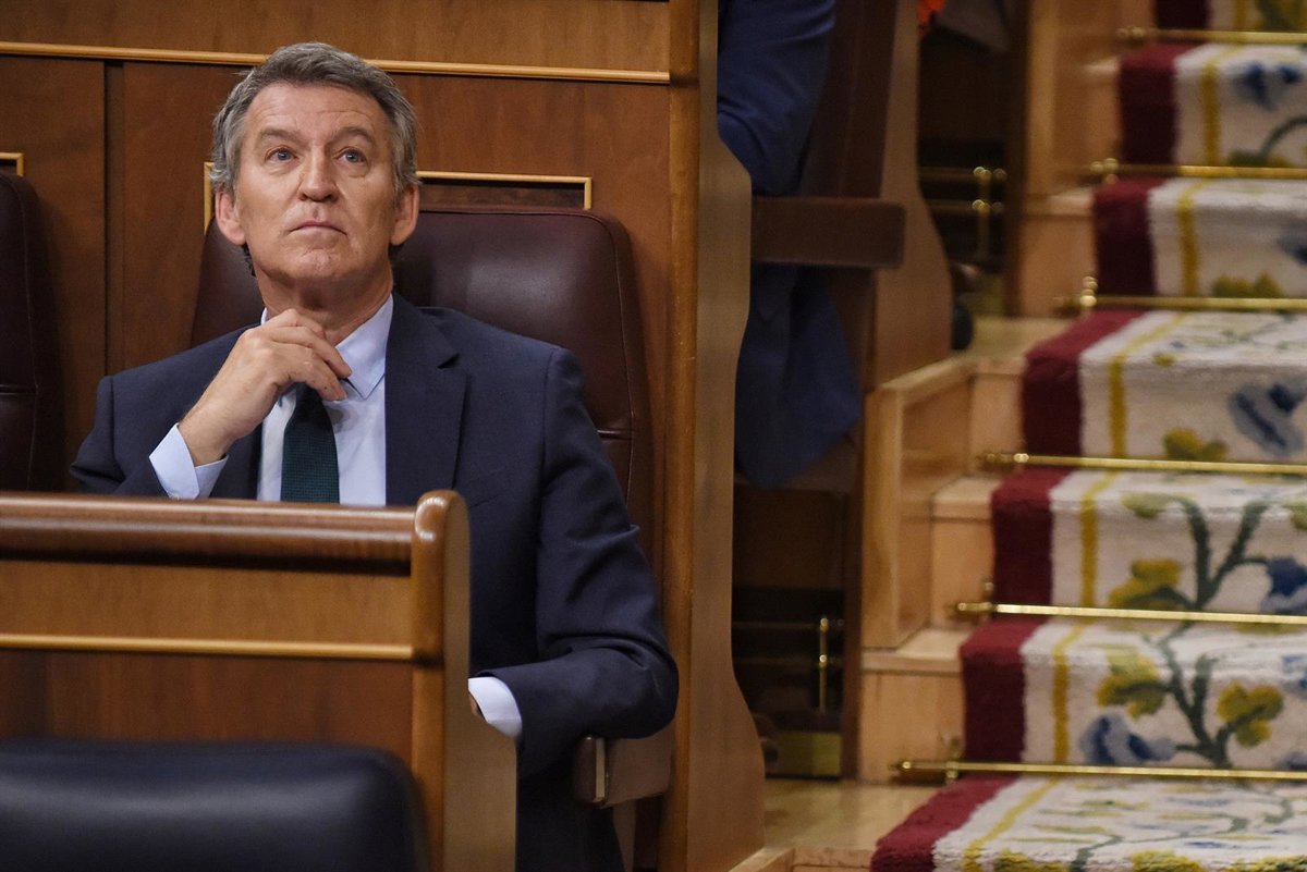 El lider de la oposición y presidente del PP, Alberto Núñez Feijóo, durante una sesión de control al Gobierno, en el Congreso de los Diputados, a 21 de mayo de 2025, en Madrid (España). - Fernando Sánchez - Europa Press