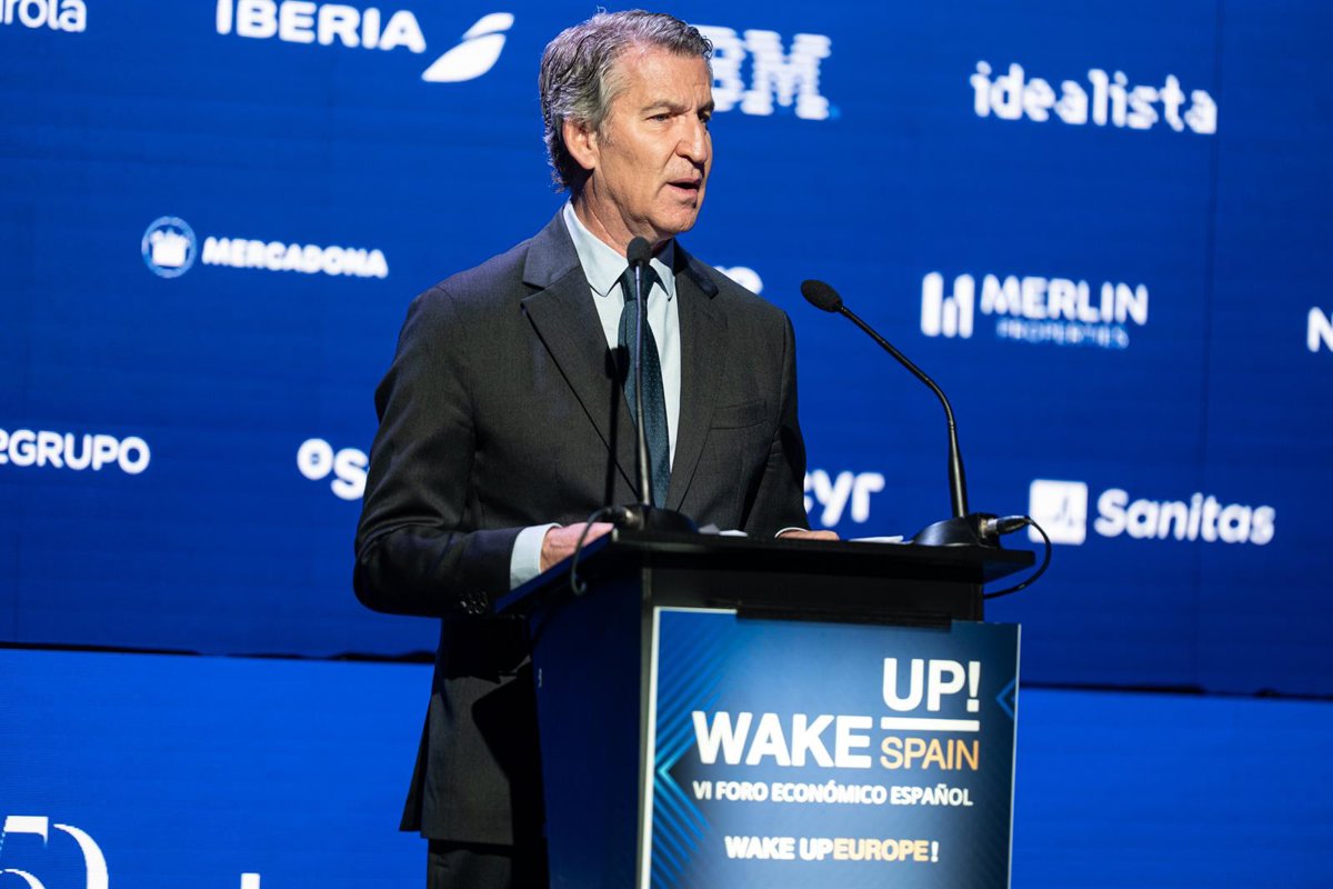 El presidente del PP, Alberto Núñez Feijóo, interviene en el VI Foro Económico ‘Wake Up, ¡Spain!, Wake Up Europe!’, organizado por El Español, a 16 de abril de 2026, en Madrid (España). - Isa Saiz - Europa Press
