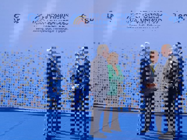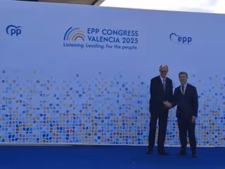 En el marco del congreso del PPE, Feijóo también se ha reunido con el comisario de Acción Climática, Wopke Hoekstra, un encuentro marcado por el apagón masivo que ha afectado a la Península y a Portugal.