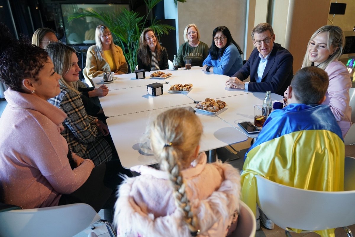 El líder del Partido Popular, Alberto Núñez Feijóo, se ha reunido este viernes con madres y niños ucranianos coincidiendo con el primer aniversario de la invasión de Rusia en Ucrania, un encuentro en el que se ha interesado por su situación ante la guerra que vive su país.