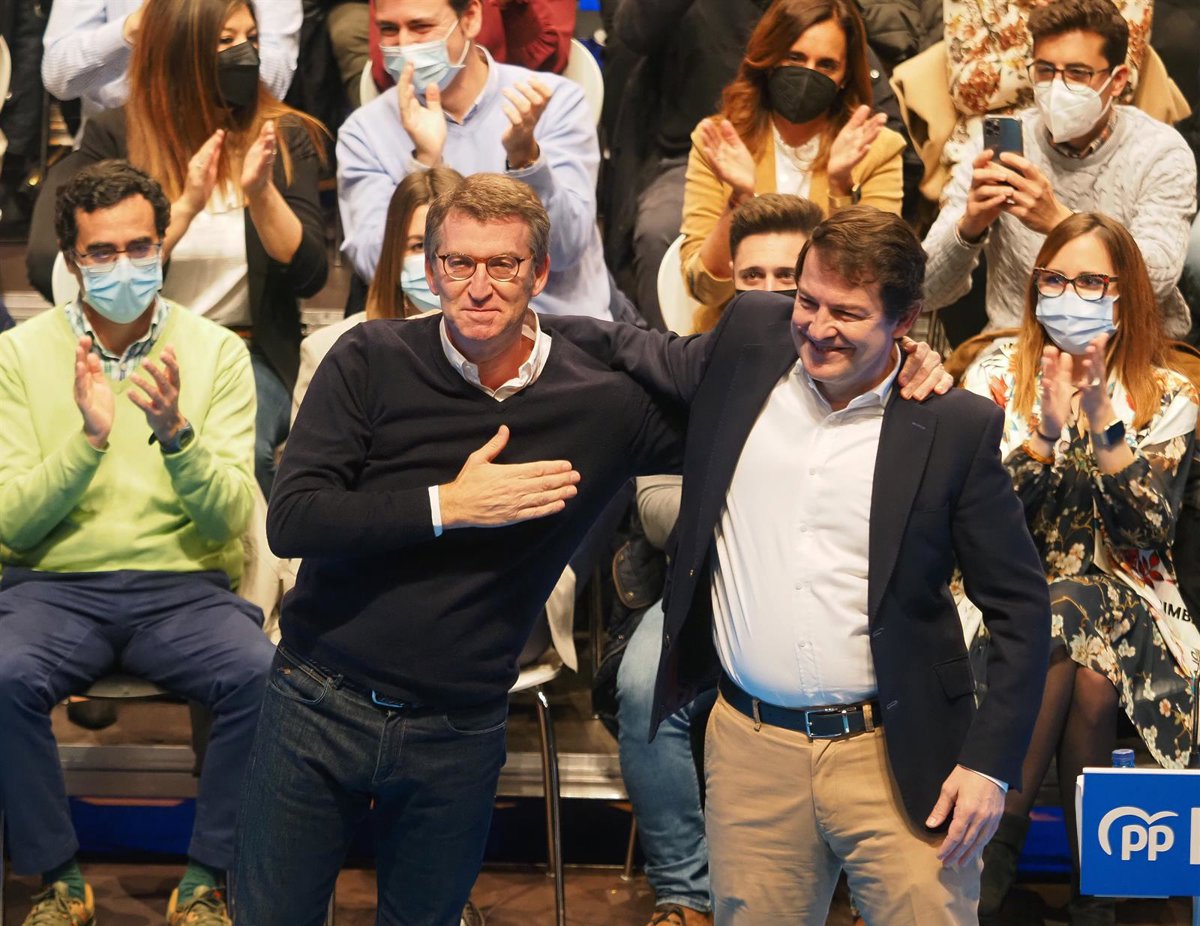 El presidente del PP, Alberto Núñez Feijóo, y el presidente en funciones de Castilla y León, Alfonso Fernández Mañueco - Photogenic/Claudia Alba - Europa Press