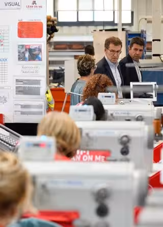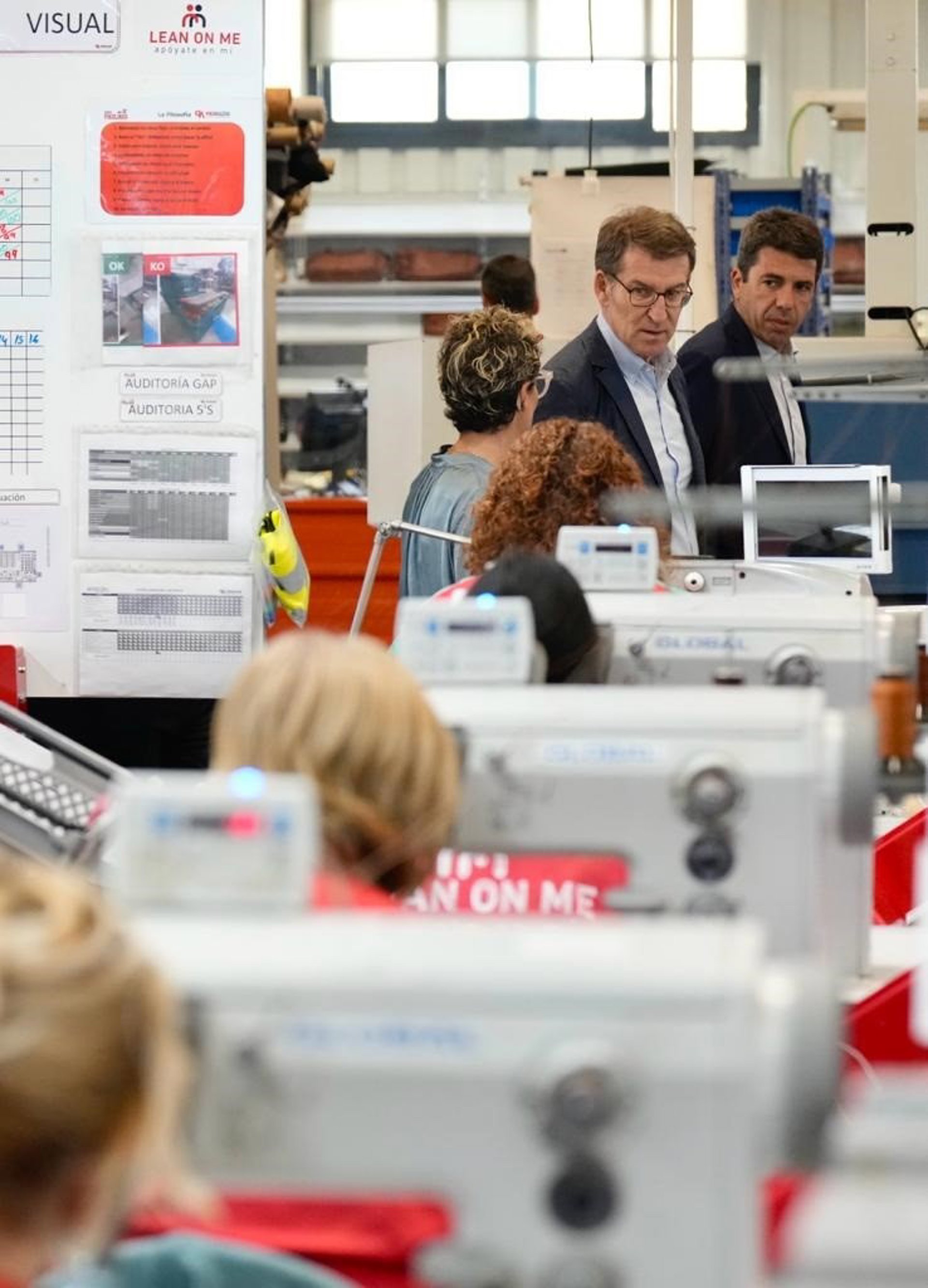 El líder del PP, Alberto Núñez Feijóo, en la visita del centro de producción de Pikolinos-Pikokaizen en Elche. - TAREK (PP)
