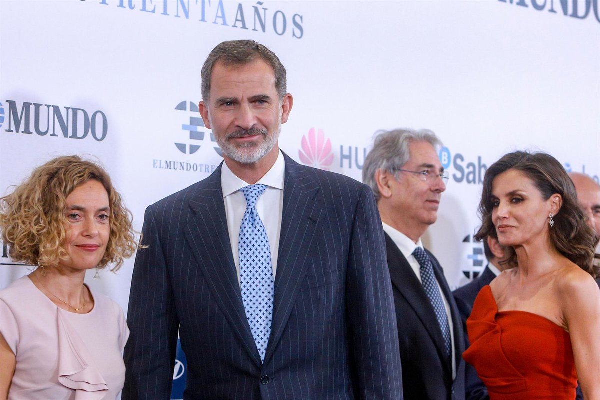 (I-D) La ministra de Política Territorial y Función Pública en funciones, Meritxell Batet, el Rey Felipe VI y la Reina Letizia asisten al acto de conmemoración del 30 Aniversario del diario 'El Mundo'. - Ricardo Rubio - Europa Press