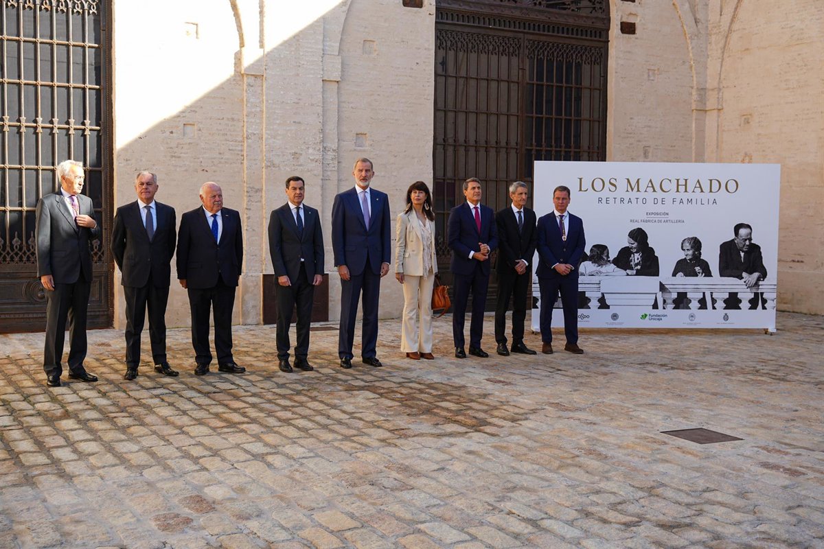 Felipe VI con Juanma Moreno y el resto de autoridades en la apertura de muestra 'Los Machado. Retrato de familia' - FRANCISCO J.OLMO