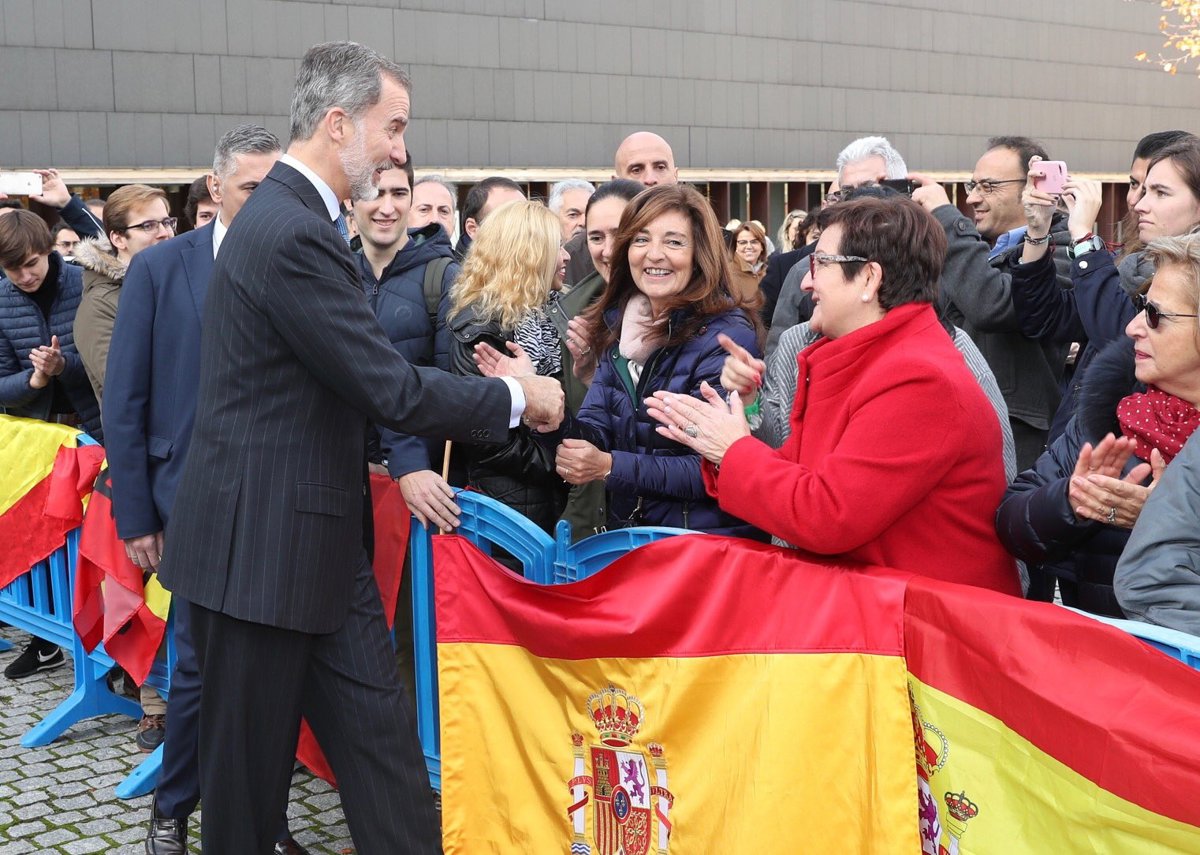 El Rey Felipe VI a la salida de sus actos saluda a varias personas que se encuentran en la calle, en Pamplona (España), a 19 de noviembre de 2019. - Casa de S.M. el Rey