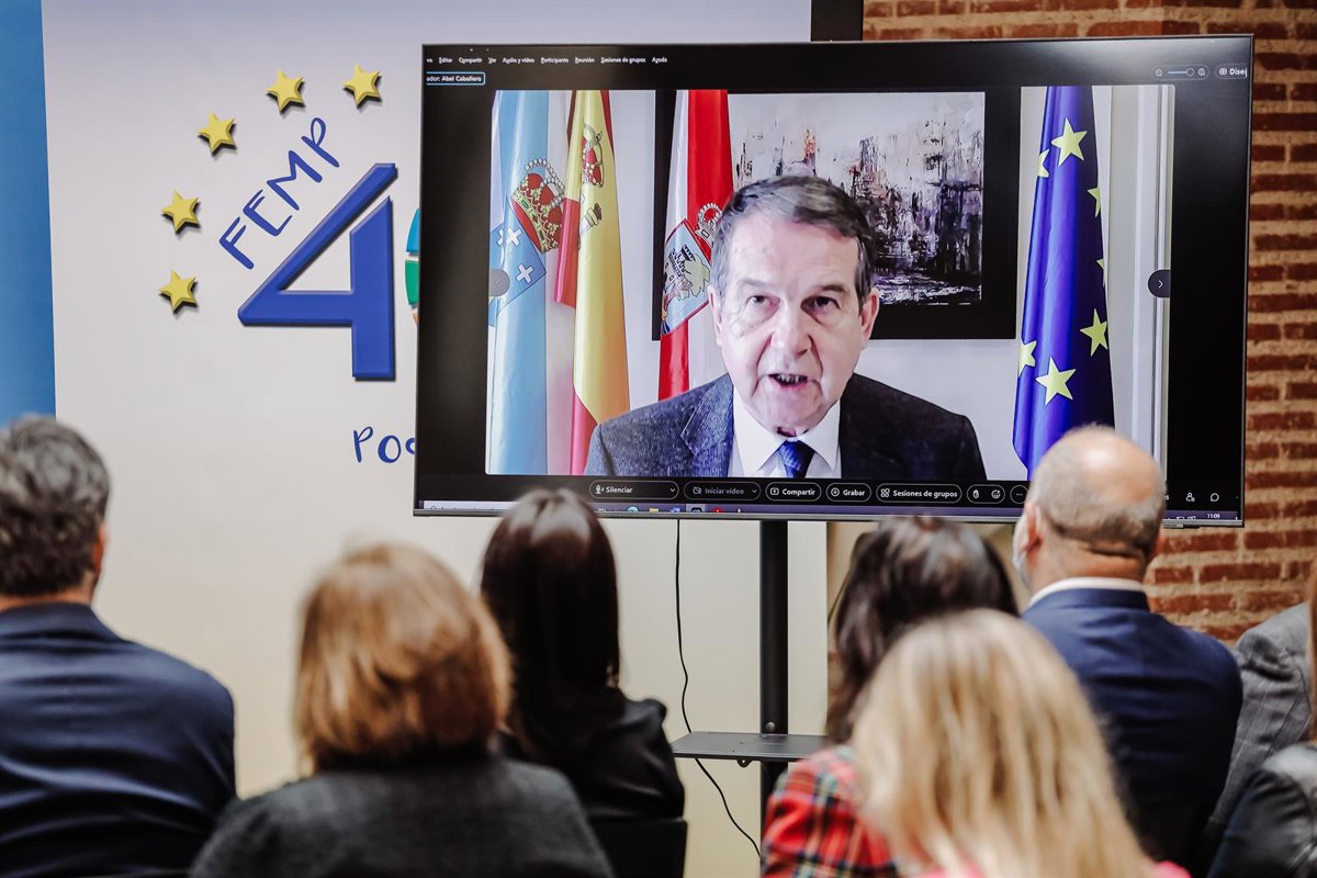 El presidente de la FEMP, Abel Caballero, interviene telemáticamente en la presentación del Plan de Recepción y Acogida de los refugiados de Ucrania, en la sede de la FEMP, a 9 de marzo de 2022, en Madrid (España). - Carlos Luján - Europa Press