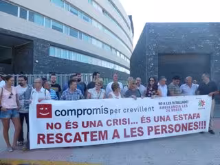 La defensa y la fiscalía han coincidido en solicitar la absolución para los dos miembros de Compromís juzgados este martes por protestar ante una sede de Bankia en Crevillent (Alicante) en 2012.