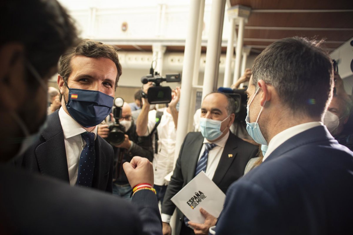 Archivo - El líder del PP, Pablo Casado (2i), acude a una sesión plenaria en la Asamblea regional de Murcia, en Cartagena, Murcia (España), a 18 de marzo de 2021. En este pleno, la Asamblea Regional de Murcia ha rechazado la moción de censura presentada - Europa Press - Archivo