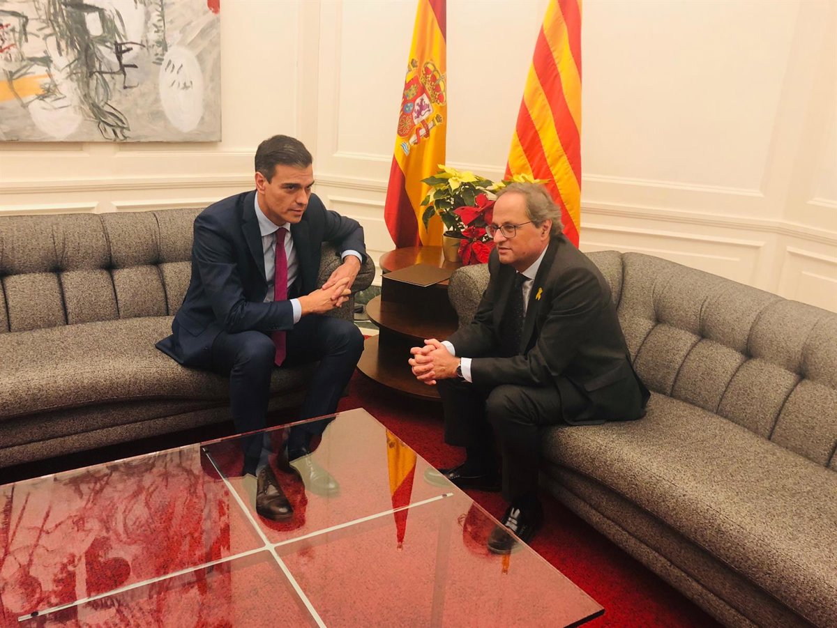 Los responsables de la Generalitat colocaron seis sillas, tres a cada lado de la mesa. Inmediatamente, los servicios de protocolo de Moncloa ordenaron retirar las dos sillas que sobraban, dado que Sánchez sólo quería reunirse con Torra. Según el Ejecutivo, el único formato posible para la reunión con Torra es el previsto para los encuentros que habitualmente celebra el presidente del Gobierno con los dirigentes autonómicos.