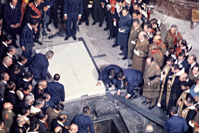 Ofrecemos a continuación, por su interés de actualidad, imágenes del momento histórico del entierro de Francisco Franco en el Valle de los Caídos el 23 de noviembre de 1975, extraídas del archivo histórico de Europa Press.