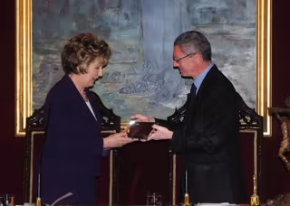 A continuación, McAleese y Gallardón se han dirigido a la Sala Goya para firmar en el libro de honor, justo antes de entrar en el Salón de Plenos para el acto oficial de entrega de las Llaves de Oro y la lectura de los discursos, en presencia de gran parte de la Corporación municipal.