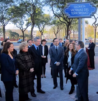 El ministro de Justicia, Alberto Ruiz-Gallardón, y el alcalde de Sevilla, Juan Ignacio Zoido, han descubierto la placa e inaugurado oficialmente la glorieta 'Víctimas del terrorismo' de la capital hispalense, ubicada en la avenida de la Paz con la avenida de las Mercedes, cuando se cumplen 15 años del asesinato del que fuera teniente de alcalde del Ayuntamiento de Sevilla, Alberto Jiménez-Becerril, y su esposa, Ascensión García Ortiz, a manos de la banda terrorista ETA.