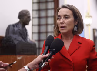 La portavoz del PP en el Congreso, Cuca Gamarra, ofrece declaraciones a los medios a su salida de una sesión plenaria en el Congreso, a 5 de octubre de 2022, en Madrid (España). Durante el pleno, el presidente del Gobierno responde hoy a preguntas relac - Eduardo Parra - Europa Press