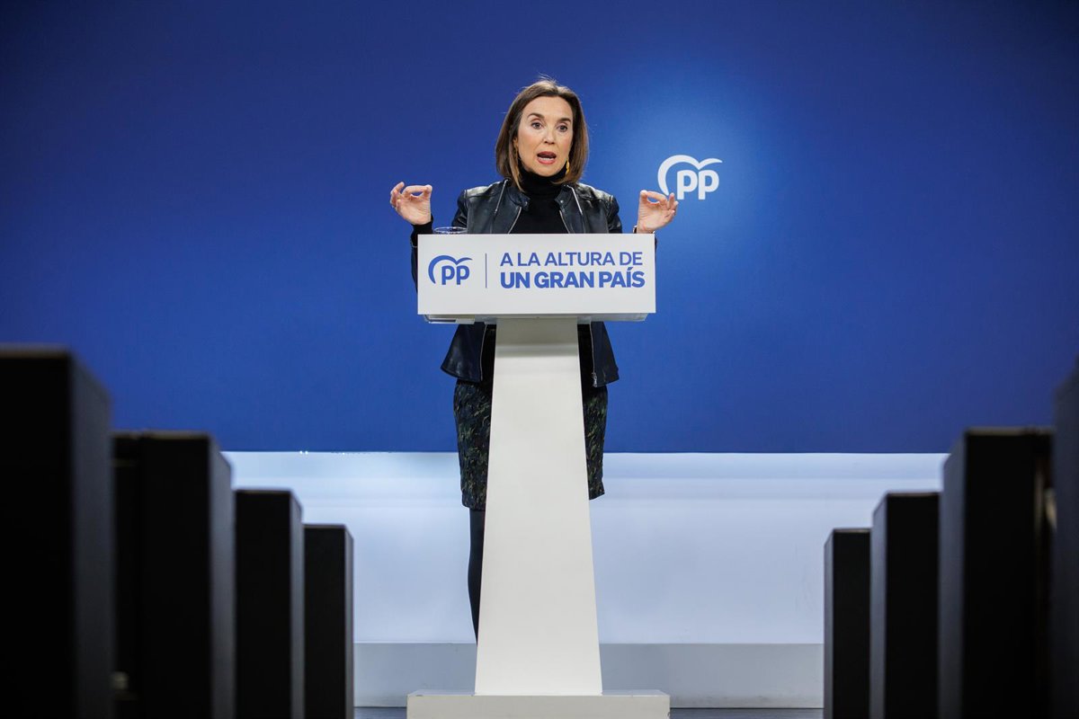 La secretaria general del Partido Popular y portavoz del PP en el Congreso, Cuca Gamarra, ofrece una rueda de prensa para valorar la actualidad política, a 27 de diciembre de 2022, en Madrid (España). Gamarra ha retrasado su comparecencia para escuchar - Alejandro Martínez Vélez - Europa Press