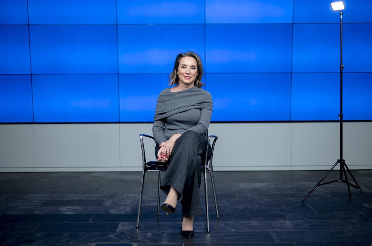 La secretaria general del PP, Cuca Gamarra, durante una entrevista concedida a Europa Press, en la sede nacional del partido en la calle Génova. - ALBERTO ORTEGA (EUROPA PRESS)