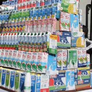 En el exterior del hipermercado situado en el polígono de Costa Vella, los productores lácteos tiraron, minutos antes del mediodía, las cajas al suelo y comenzaron a lanzar cartones al suelo y contra la fachada del establecimiento. Asimismo, prendieron fuego a un montón de tetra briks.