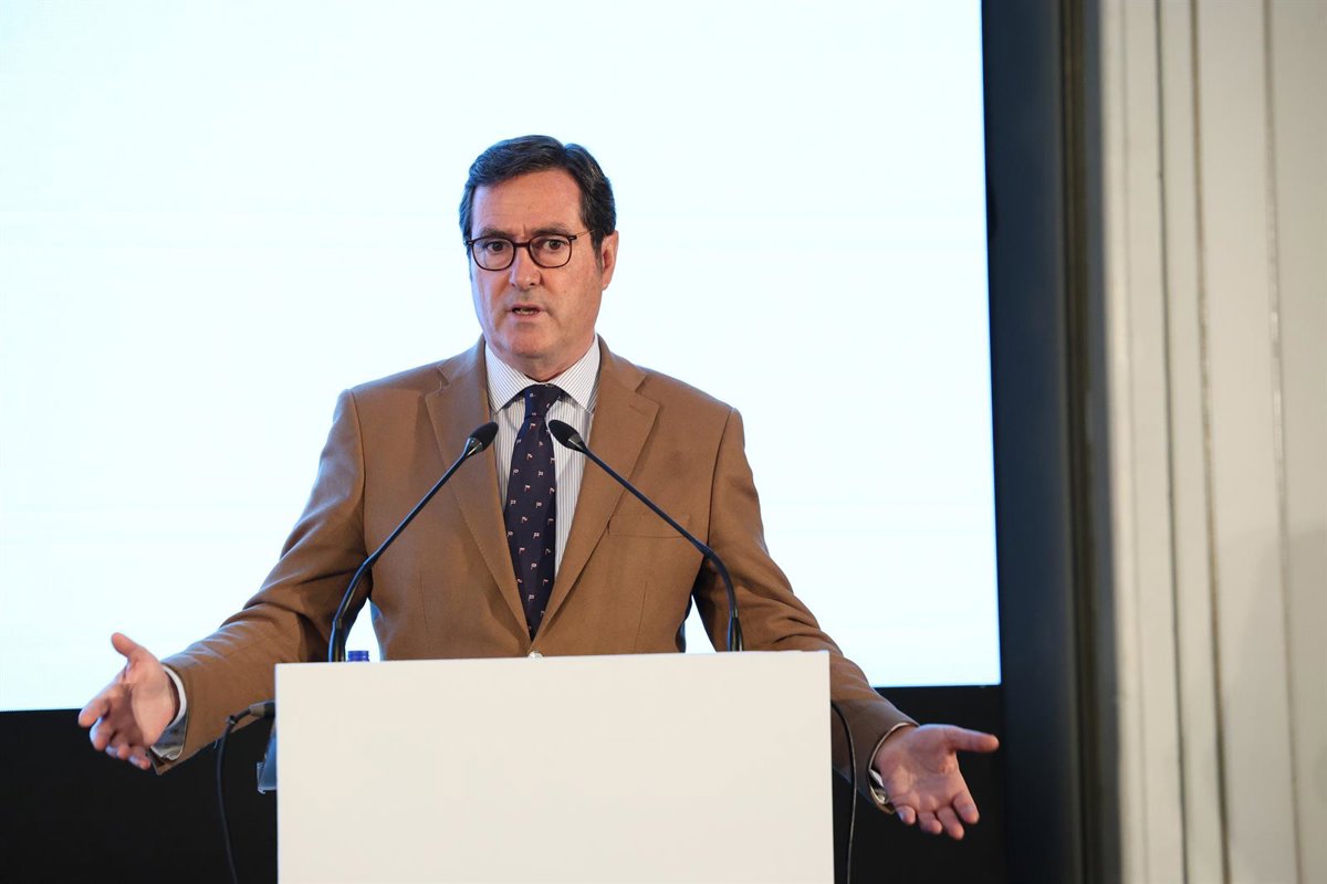 El presidente de la CEOE, Antonio Garamendi, durante su intervención en el I Foro Económico y Empresarial de OKdiario - Marta Fernández Jara - Europa Press