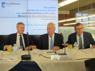 Margallo, exalumno de la Universidad de Deusto, ha participado este martes en el Encuentro Deusto Business Alumni, evento organizado por Deusto Business Alumni en colaboración con PwC, en el que ha hablado sobre las orientaciones de la política exterior durante los últimos cuatro años.
