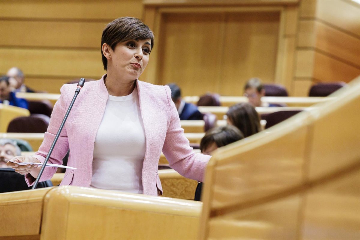 La ministra de Política Territorial y portavoz del Gobierno, Isabel Rodríguez, interviene durante una sesión de control al Gobierno en el Senado, a 18 de abril de 2023, en Madrid (España). Calviño ha abordado hoy, ante la Cámara Alta, el modelo de polít - Carlos Luján - Europa Press