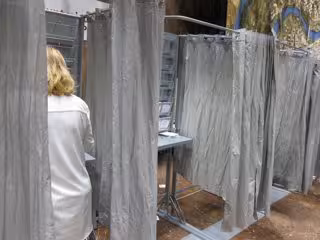 Archivo - Una señora en una cabina para elegir el voto en las elecciones - EUROPA PRESS - Archivo