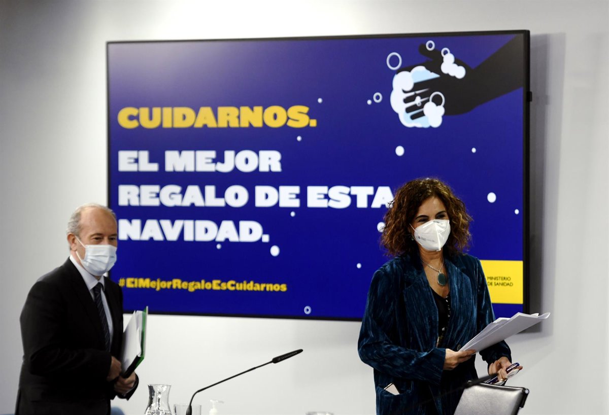 La ministra portavoz y de Hacienda, María Jesús Montero (d), y el ministro de Justicia, Juan Carlos Campo (i), se disponen a comparecer en rueda de prensa posterior al Consejo de Ministros celebrado en Moncloa, en Madrid (España). - EUROPA PRESS/O.CAÑAS.POOL - Europa Press