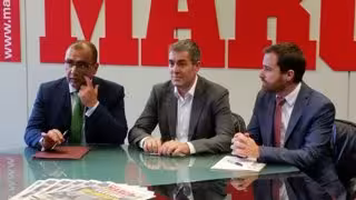 La firma ha tenido lugar en la sede madrileña del diario Marca y ha contado con la participación del director de este periódico deportivo, Juan Ignacio Gallardo, del presidente del Gobierno de Canarias, Fernando Clavijo, y del consejero canario de Turismo, Cultura y Deportes, Isaac Castellano.