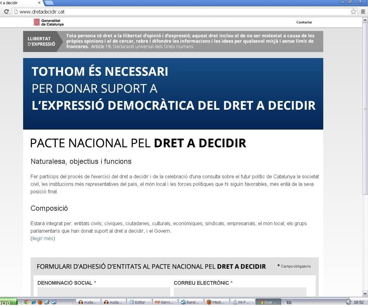 El Gobierno catalán ha puesto en marcha este jueves la página web 'dretadecidir.cat', con el propósito de recabar el apoyo de entidades sociales a la consulta soberanista que quiere celebrar.
