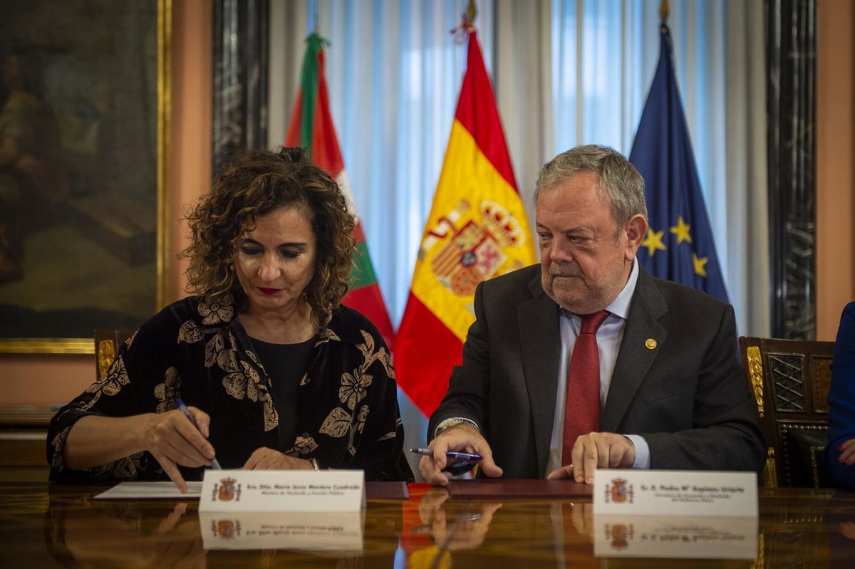 Así queda reflejado en los acuerdos en materia financiera que han firmado este jueves la ministra de Hacienda, María Jesús Montero, con la representación vasca, formada por el consejero de Economía, Pedro Azpiazu, la consejera de Gobernanza Pública, Olatz Garamendi, y los tres diputados generales de las Diputaciones Forales del País Vasco.