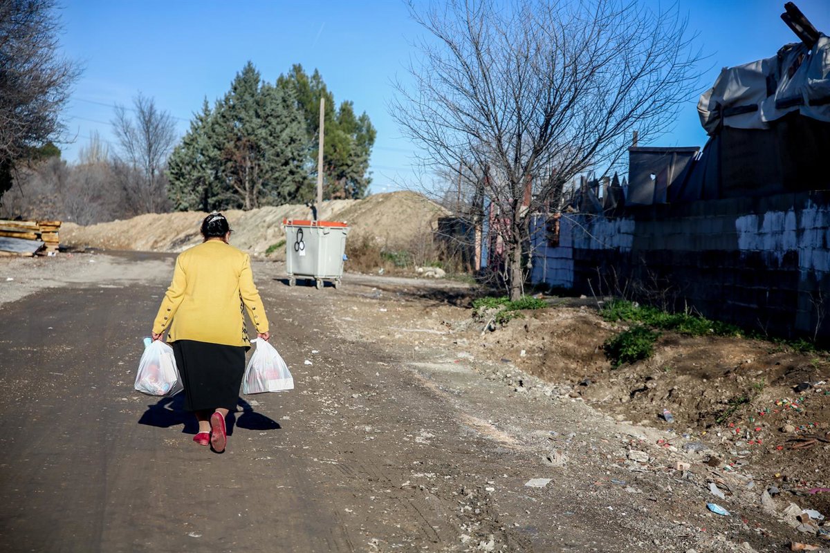 Archivo - Una mujer camina con bolsas que ha recogido en la entrega de regalos y alimentos organizada por la Fundación Madrina, en la Cañada Real, a 31 de diciembre de 2021, en Madrid, (España). La entrega de regalos y comida va dirigida para los niños - Ricardo Rubio - Europa Press - Archivo
