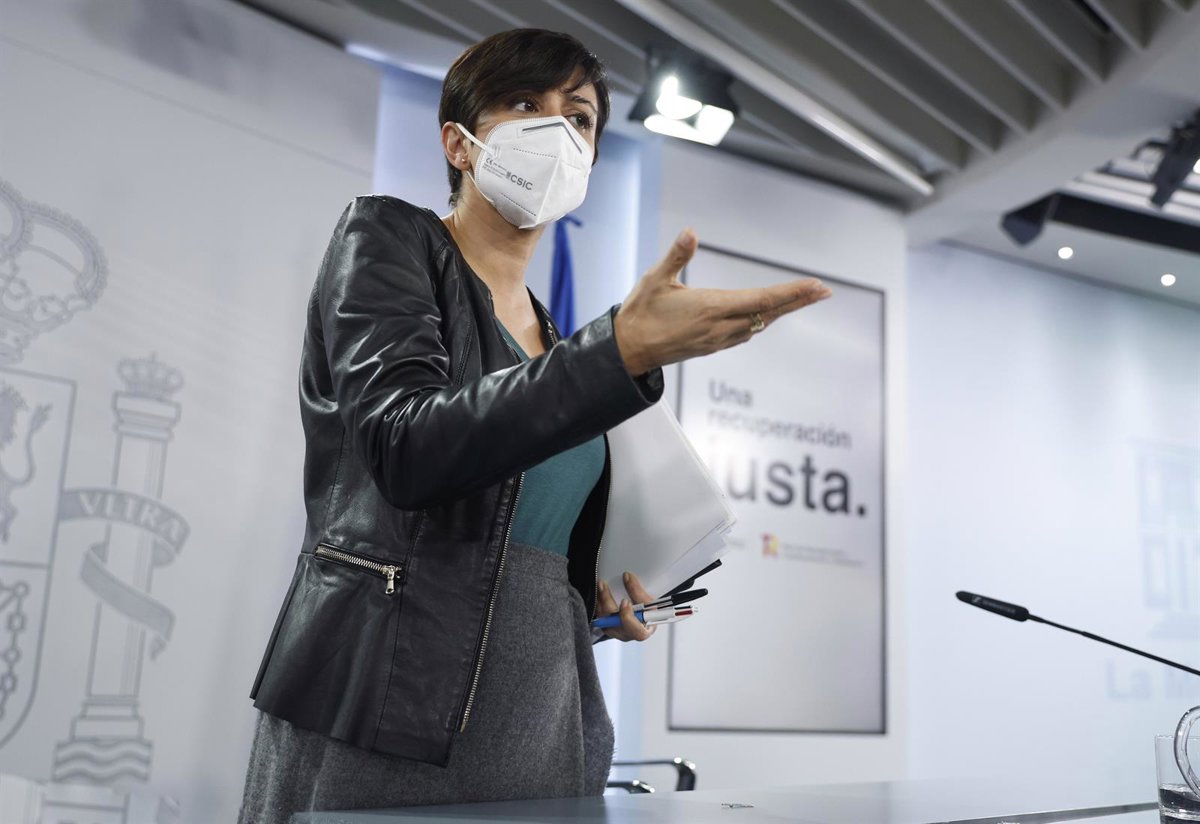 La ministra de Política Territorial y portavoz del Gobierno, Isabel Rodríguez, conversa con los periodistas tras una rueda de prensa posterior a una reunión del Consejo de Ministros, a 7 de diciembre de 2021, en Madrid (España). - Eduardo Parra - Europa Press