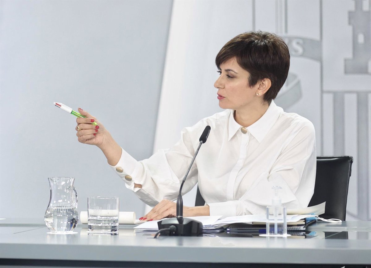 La ministra Portavoz, Isabel Rodríguez, comparece tras el Consejo de Ministros en Moncloa, a 12 de abril de 2022, en Madrid (España). El Gobierno ha aprobado la Ley 20/2021, denominada como Ley de interinos, para reducir la temporalidad en el empleo p - Eduardo Parra - Europa Press
