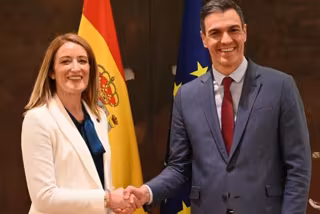 La presidenta de la Eurocámara, Roberta Metsola, (Izq) y el presidente del Gobierno, Pedro Sánchez, (Dcha) durante una reunión en Madrid. - PRESIDENCIA DEL GOBIERNO