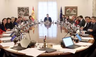 Sala de reuniones de La Moncloa durante el primer consejo de ministros del Gobierno de coalición del PSOE y Unidas Podemos en la XIV Legislatura. - Eduardo Parra - Europa Press