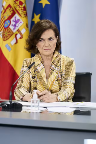 La vicepresidenta primera, Carmen Calvo, comparece en rueda de prensa posterior al Consejo de Ministros en Moncloa, a 4 de mayo de 2021, en Madrid (España). El Consejo de Ministros de hoy ha sido el último que el Gobierno ha celebrado antes del fin del - A, Pérez Meca. POOL - Europa Press