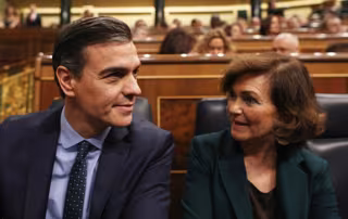 El presidente del Gobierno en funciones, Pedro Sánchez y la vicepresidenta del Gobierno en funciones, Carmen Calvo, durante la sesión de constitución de las Cortes para la XIV Legislatura en el Congreso de los Diputados - Eduardo Parra - Europa Press