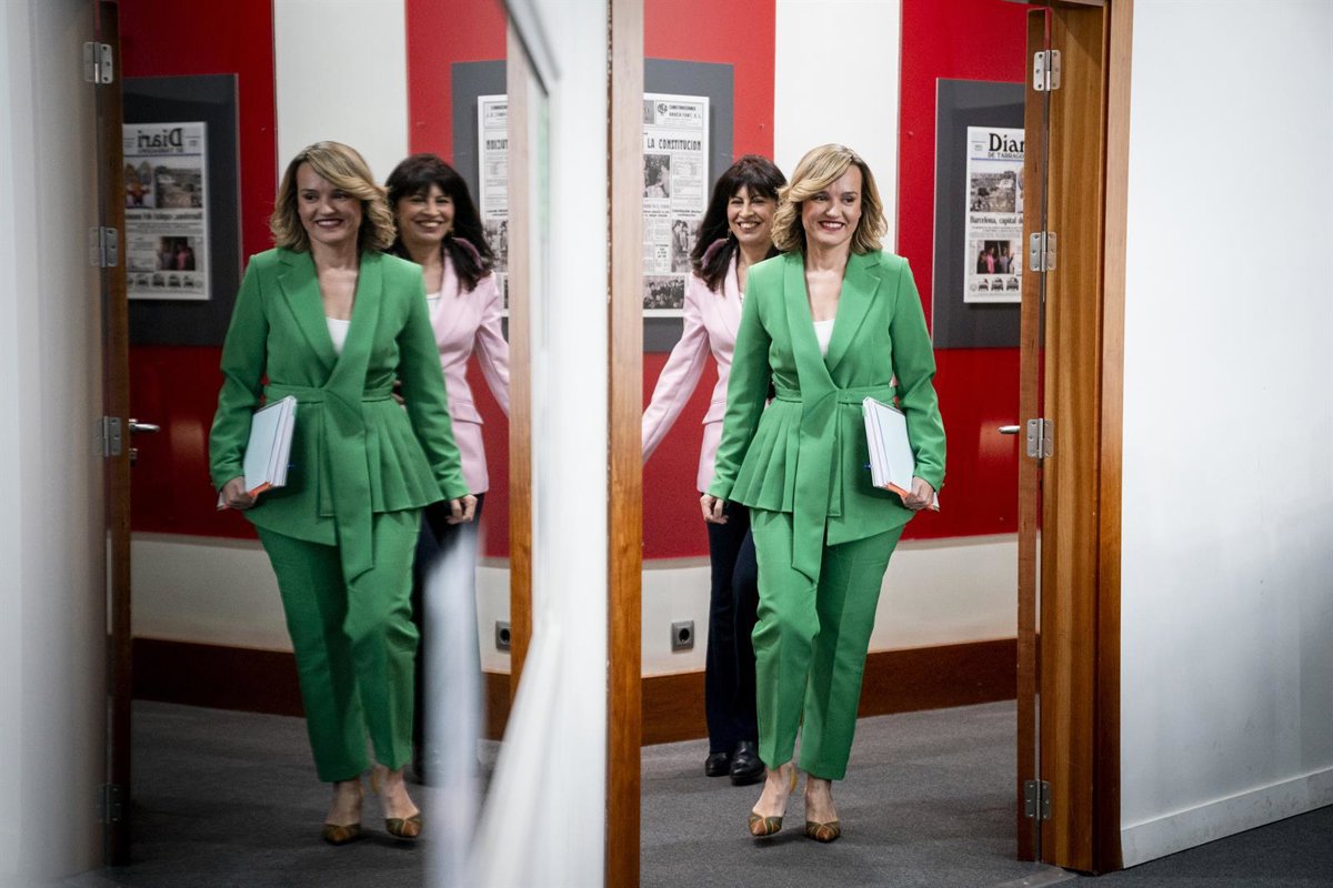 La ministra de Igualdad, Ana Redondo (i), y la ministra de Educación, FP y Deportes y portavoz del Gobierno, Pilar Alegría (d), a su llegada a una rueda de prensa tras la reunión del Consejo de Ministros, a 20 de mayo de 2025, en Madrid (España). - A. Pérez Meca - Europa Press