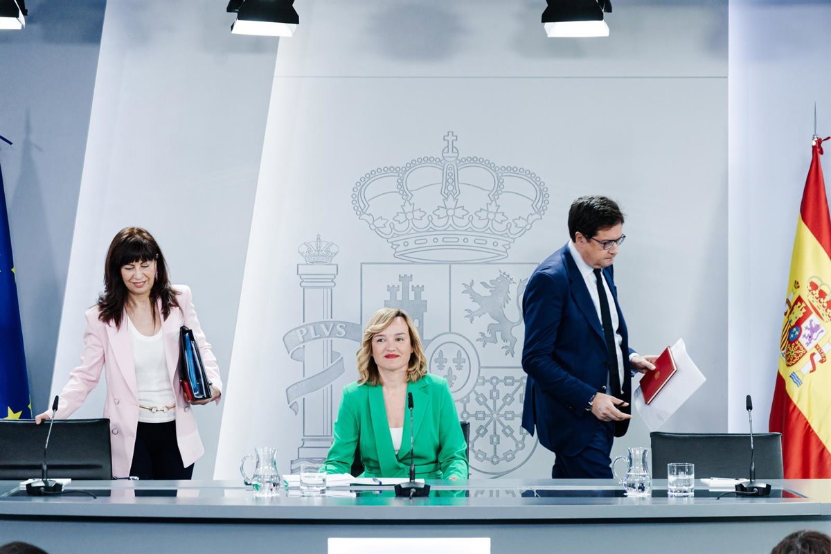 La ministra de Igualad, Ana Redondo; la portavoz el Gobierno, Pilar Alegría, y el ministro de Transformación Digital y Función Pública, Óscar López, durante una rueda de prensa posterior a la reunión del Consejo de Ministros. - Carlos Luján - Europa Press