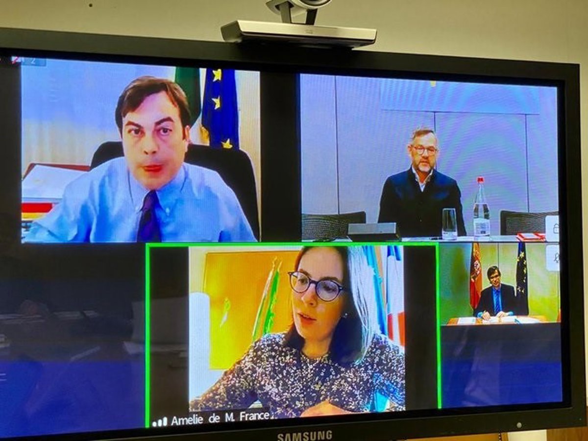 El Secretario de Estado para la Unión Europea, Juan González-Barba, en reunión por videoconferencia con sus homólogos de Francia, Amélie de Montchalin, de Alemania, Michael Roth y de Italia, Enzo Amendola. - TWITTER SECRETARÍA DE ESTADO PARA LA UE