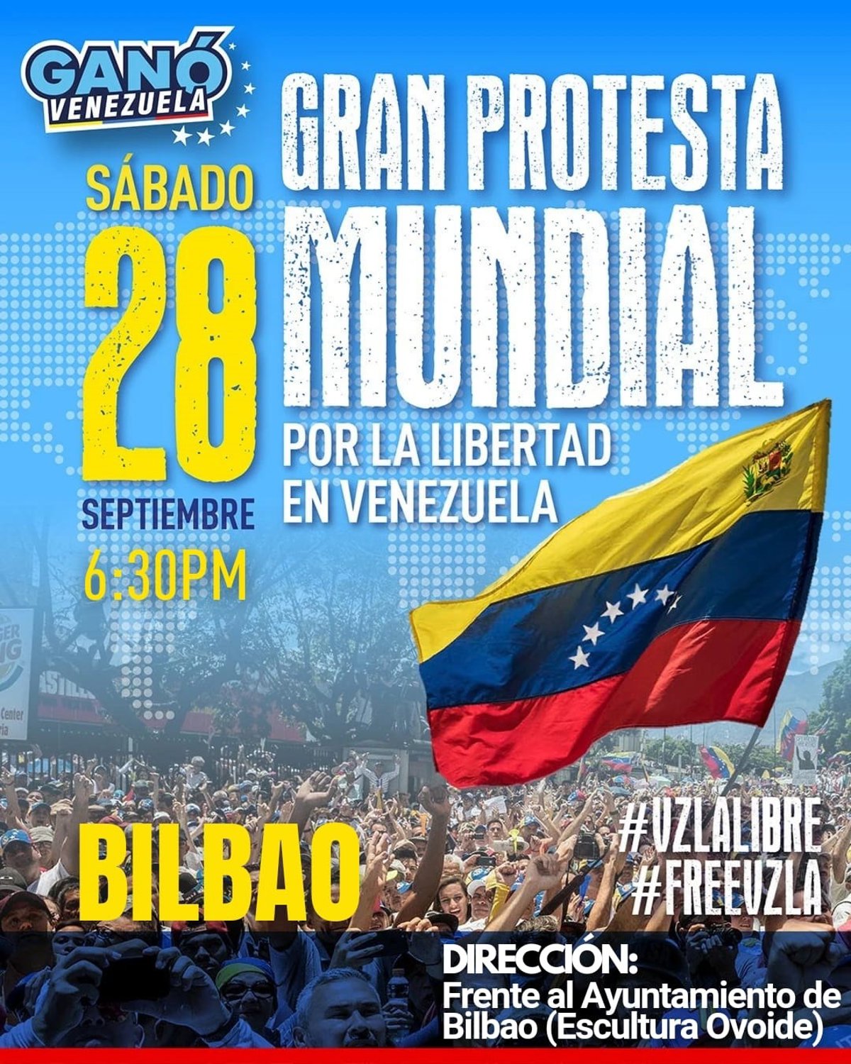 La gran protesta mundial "por la libertad de Venezuela" llega el día 28 a Bilbao tras la detención de dos bilbaínos por el Gobierno de Nicolás Maduro - ORGANIZADORES DE LA PROTESTA MUNDIAL POR VENEZUELA