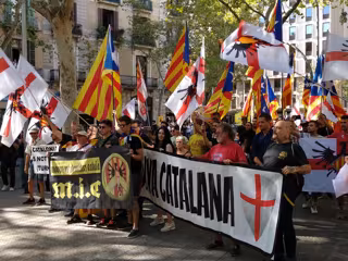 Y cuatro miembros de Alianza Nacional (AN) han protestado a pocos metros del monumento encabezados por su líder Pedro Pablo Peña: los Mossos les han impedido llegar y los ha separado del resto de concentrados en el acto: mientras los Mossos les custodiaban han desplegado una bandera tapando sus caras, por lo que concentrados les han gritado 'cobardes'.
