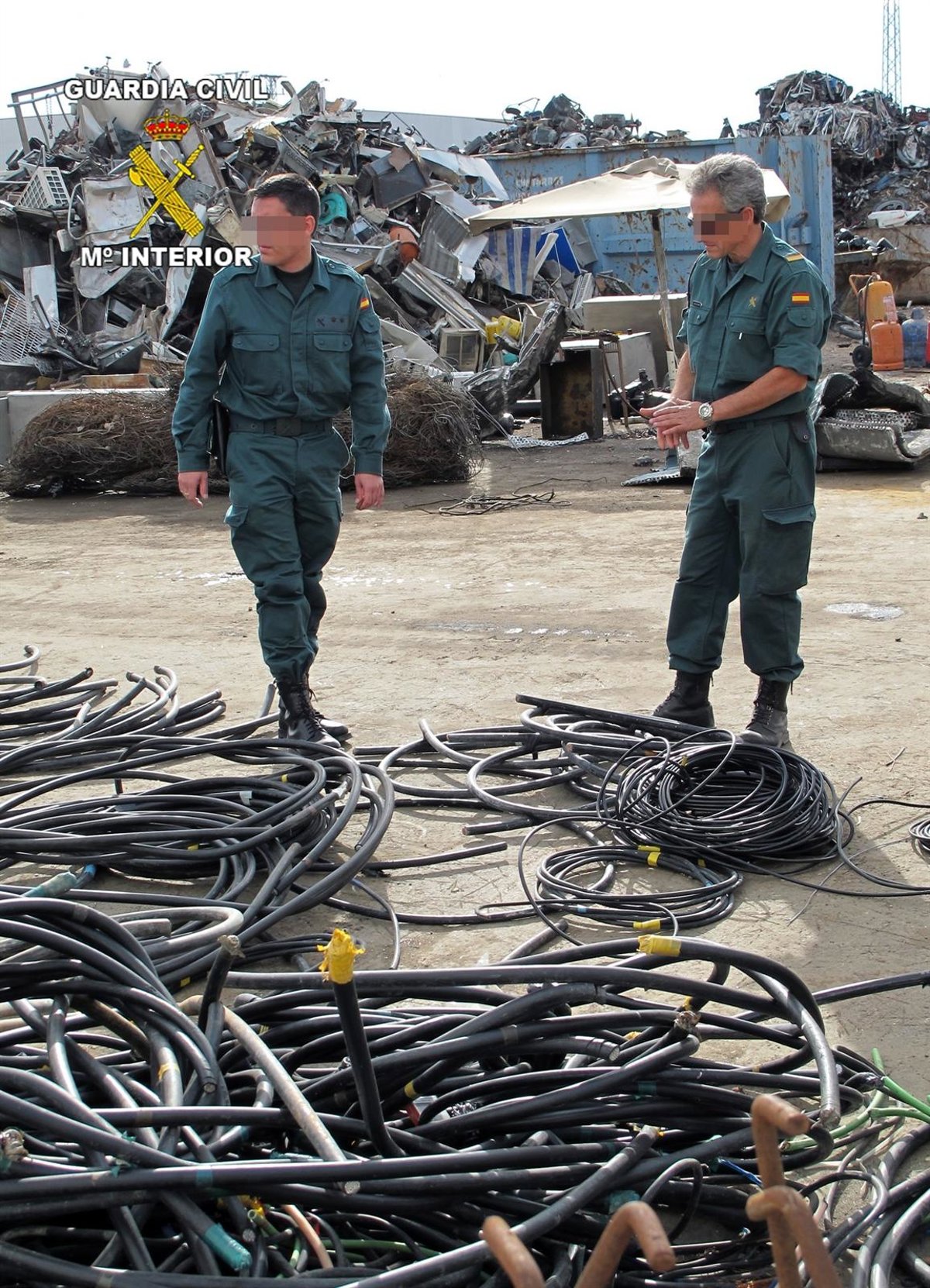 De este modo, se les imputaron sendos delitos de incendio forestal y robo de material de cobre. Además, las investigaciones continuaron con la práctica de una diligencia de entrada y registro en las instalaciones de la referida chatarrería, donde fue intervenida gran cantidad de documentación y material informático, y puestos a disposición judicial unos 10.000 kilos de material de cobre.