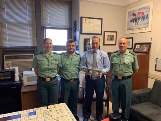 Entrega de las obras de Sor Juana Inés de la Cruz recuperadas por una subasta por parte del fiscal de distrito de Nueva York, Alvin Bragg, y el coronel jefe de la Unidad Central Operativa (UCO) de la Guardia Civil, Alfonso López Malo - GUARDIA CIVIL