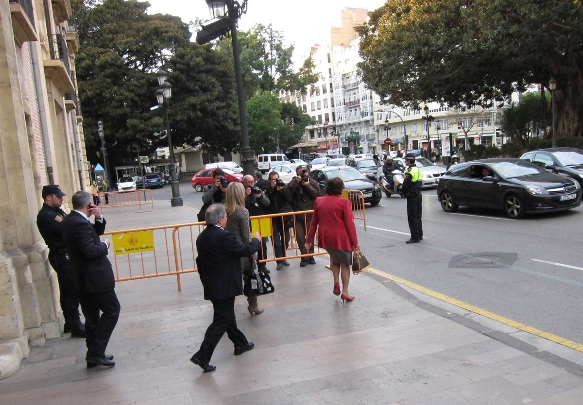 A las 16.30 horas, Barberá, Castedo y Rus, junto con el resto del público asistente, esperaban en uno de los pasillos próximos a la sala donde tiene lugar el juicio para asistir a la vista. Al empezar la sesión, los tres dirigentes han entrado al proceso durante cinco minutos.