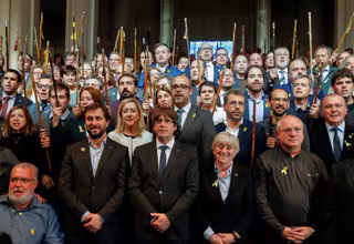 Puigdemont con 200 alcaldes independentistas - REUTERS / PASCAL ROSSIGNOL