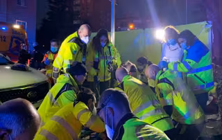 El incidente ha tenido lugar pasadas las 22.30 horas, a la altura del número 15 de la calle Domingo Párraga. Hasta el lugar han acudido en un primer momento efectivos de la Policía Municipal de Madrid, quienes han realizado la primera intervención, taponando las heridas con parches.