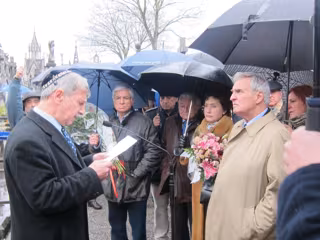 Un 'kaddish', oración en armenio de recuerdo a los muertos pronunciada ante la tumba de Múgica por el presidente del Fondo Nacional Judío, Laurence Franks, ha dado comienzo al acto al que han asistido, entre otros, el hermano del homenajeado quien fuera defensor del pueblo y ex ministro de Justicia, Enrique Múgica.