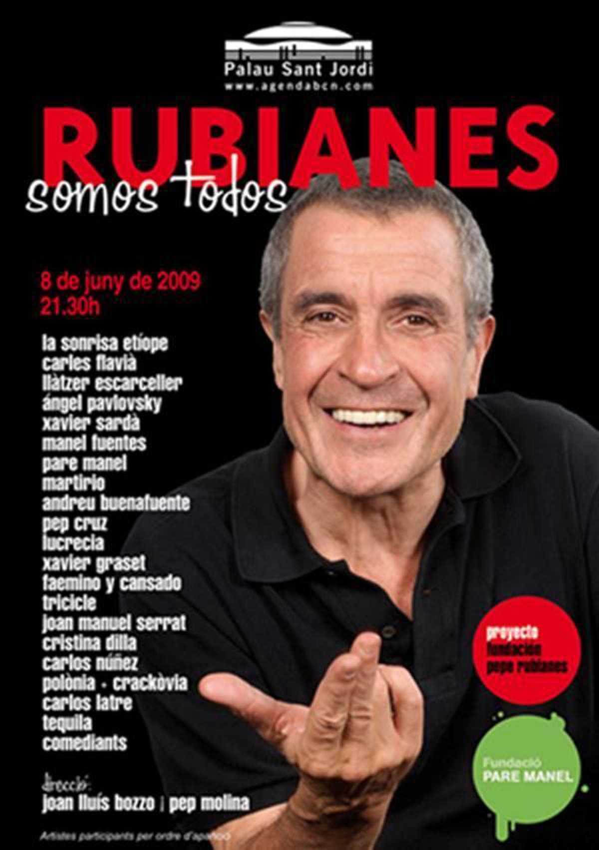 Andreu Buenafuente, Cristina Dilla, Faemino y Cansado, Carles Flavià, Manel Fuentes, el Gran Wyoming, Xavier Grasset, Carlos Latre, Loles León, Lucrecia, Albert Om, los personajes del programa televisivo 'Polònia', Xavier Sardà, Joan Manel Serrat, Tequila, Tricicle y las bailarinas etíopes del último espectáculo que interpretó Rubianes participarán en el homenaje.
